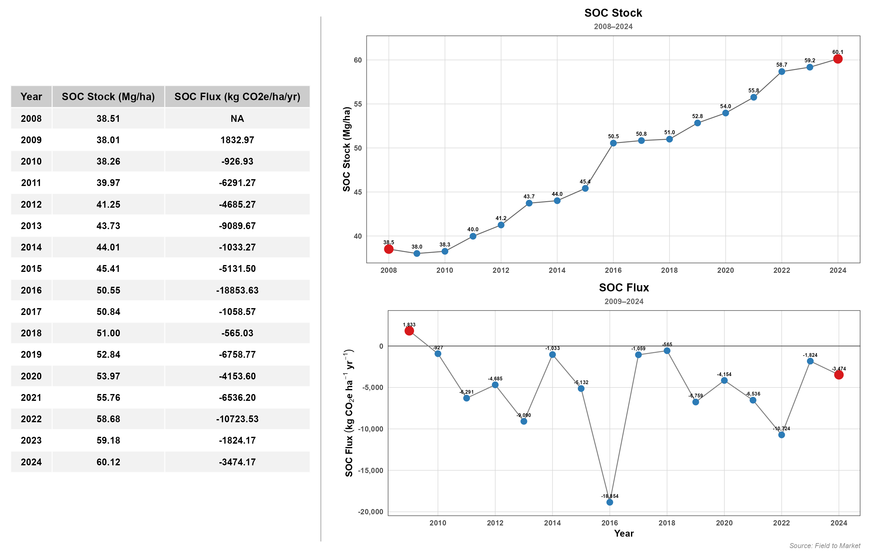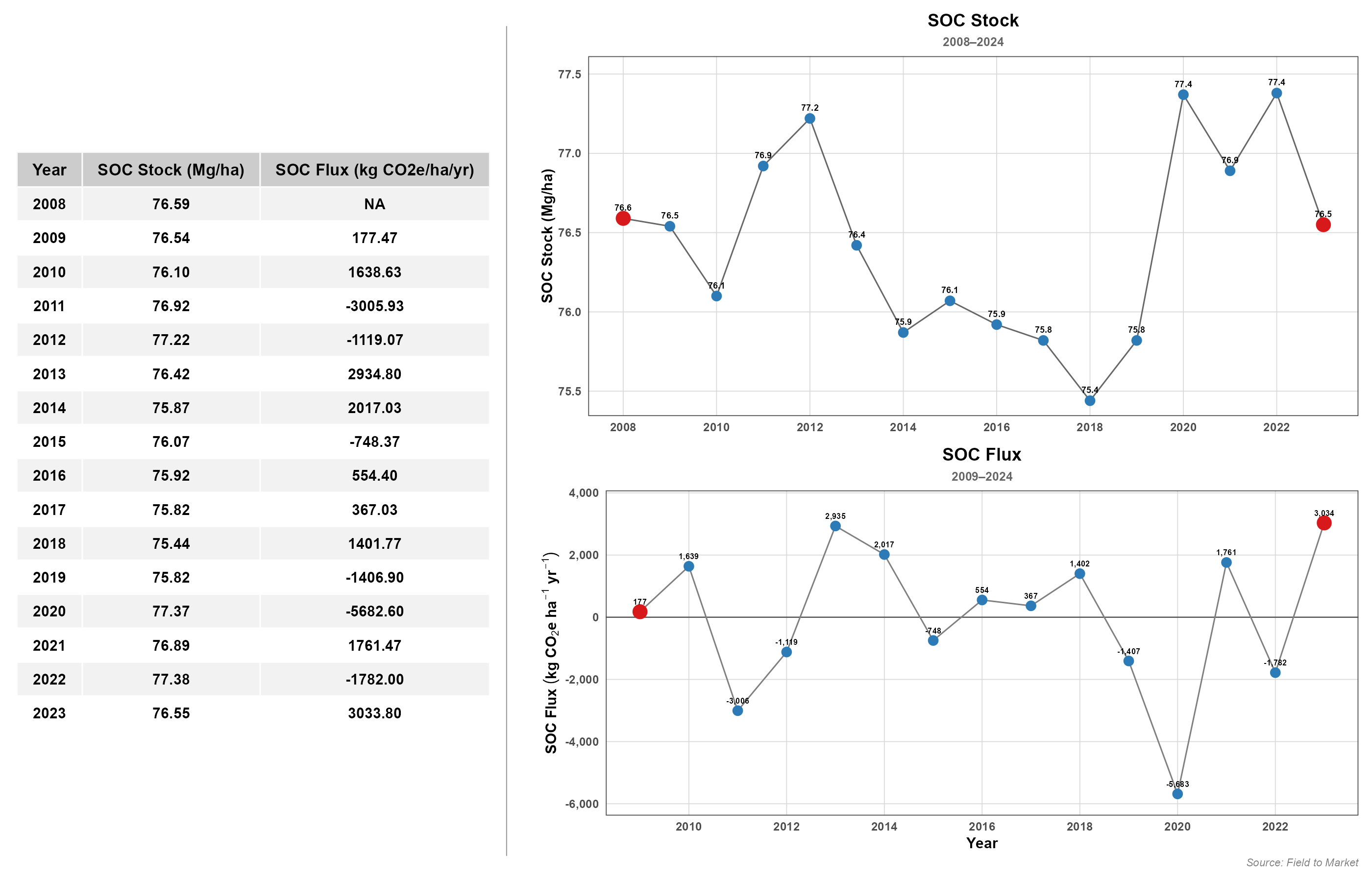- \(\Delta SOC\) = Soil organic carbon (SOC) stock changes from consecutive years.